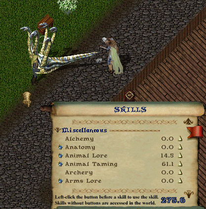 (Sacrifice Moongate’in East yönünde bulabilirsiniz.) Aşağıdaki görselde pet ile saldırarak Taming yeteneğinin artışını görüyorsunuz.